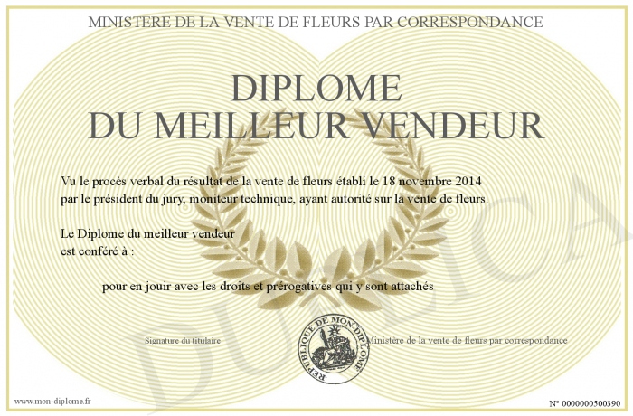 Envoyez par email votre Diplôme du meilleur vendeur personalisé