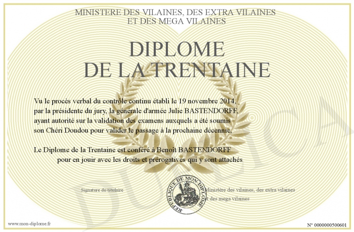 Envoyez par email votre Diplome de la Trentaine personalisé