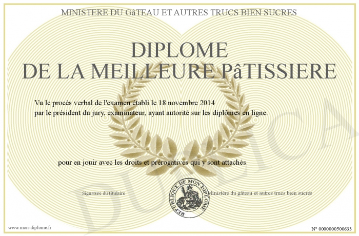 Envoyez par email votre Diplôme de la meilleure pâtissière personalisé