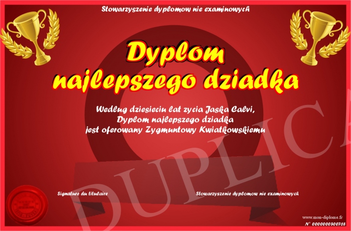 Envoyez par email votre Dyplom najlepszego dziadka personalisé