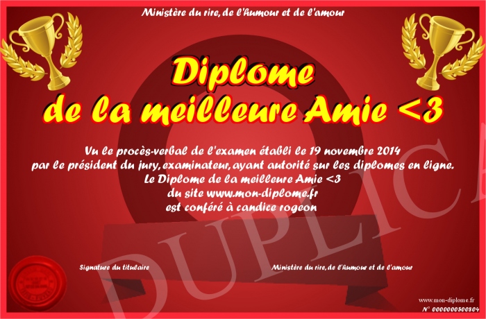 Envoyez par email votre Diplome de la meilleure Amie -3 personalisé