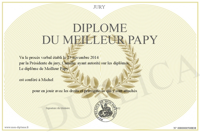 Envoyez par email votre Diplôme du Meilleur Papy personalisé