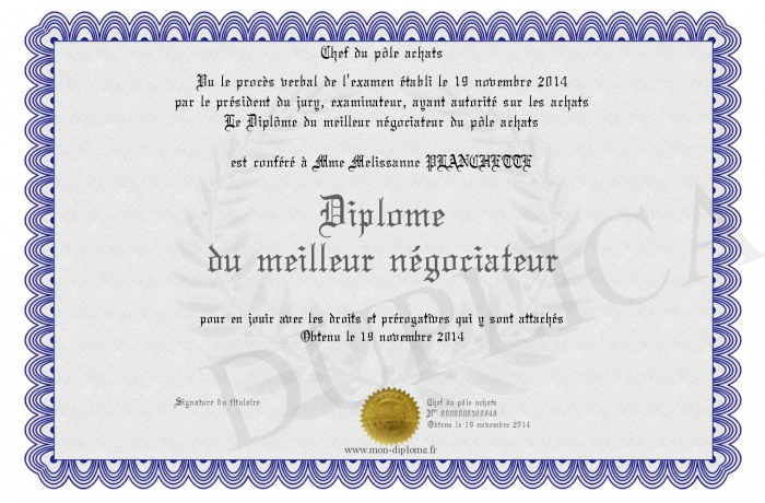 Envoyez par email votre Diplôme du meilleur négociateur personalisé