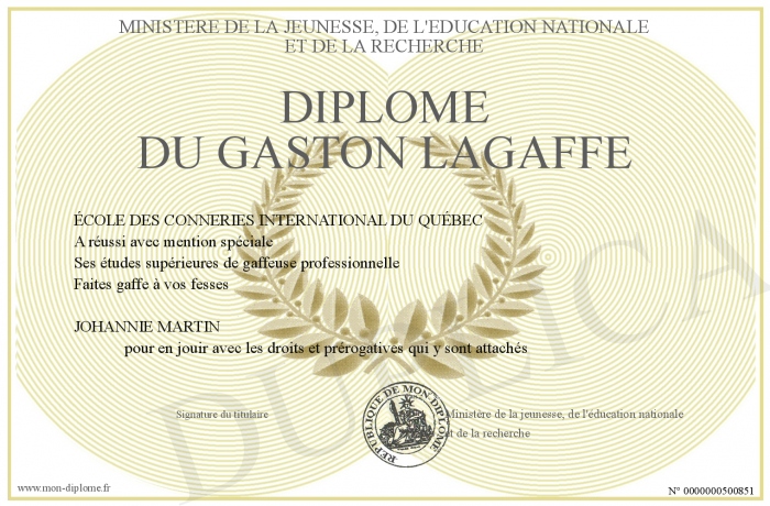 Envoyez par email votre Diplôme du GASTON LAGAFFE personalisé