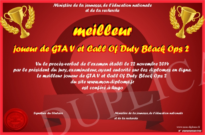 Envoyez par email votre meilleur joueur de GTA V et Call Of Duty Black Ops 2 personalisé