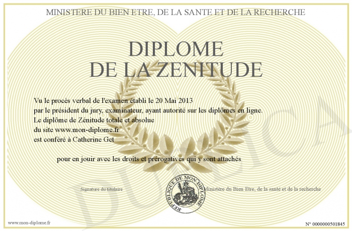 Envoyez par email votre Diplôme de la Zénitude personalisé