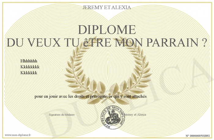 Envoyez par email votre Diplôme du Veux tu être mon parrain ? personalisé