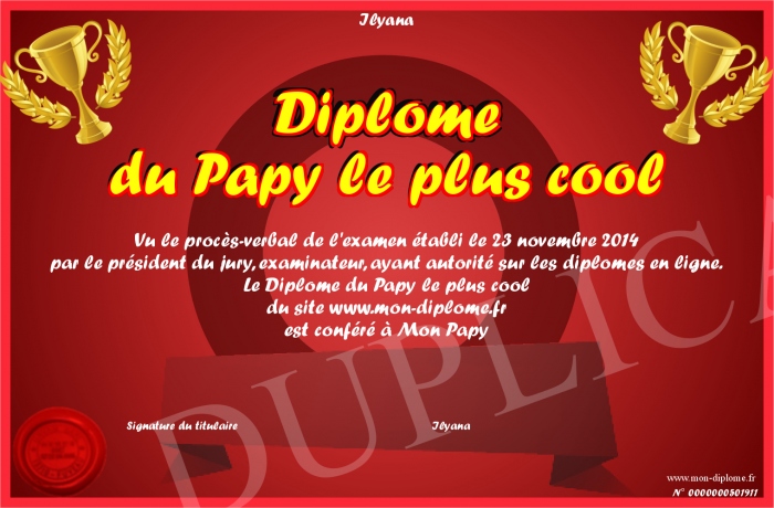 Envoyez par email votre Diplôme du Papy le plus cool personalisé