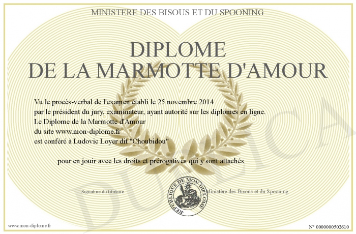 Envoyez par email votre Diplôme de la Marmotte d'Amour personalisé