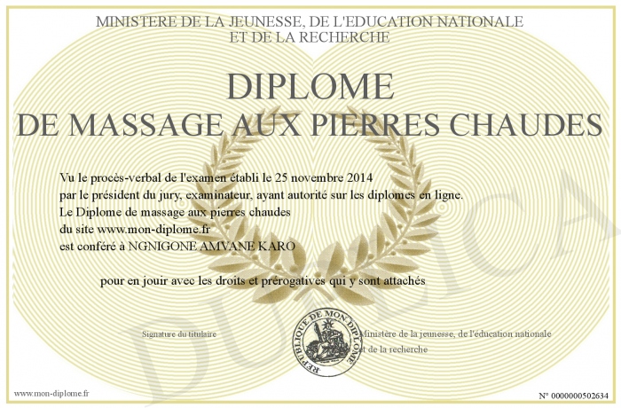 Envoyez par email votre Diplôme de massage aux pierres chaudes personalisé