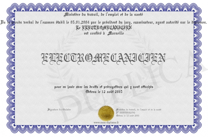 Envoyez par email votre ELECTROMECANICIEN personalisé