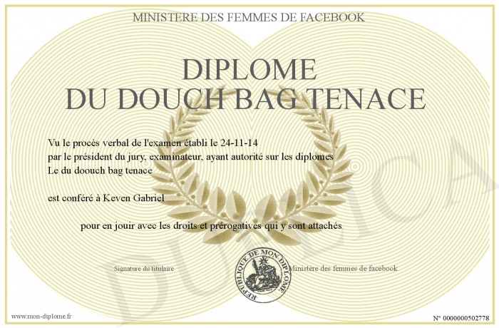 Envoyez par email votre Diplôme du douch bag tenace personalisé