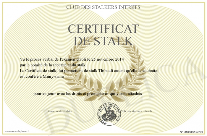 Envoyez par email votre Certificat de stalk personalisé