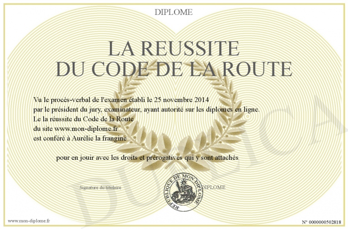 Envoyez par email votre la réussite du Code de la Route personalisé