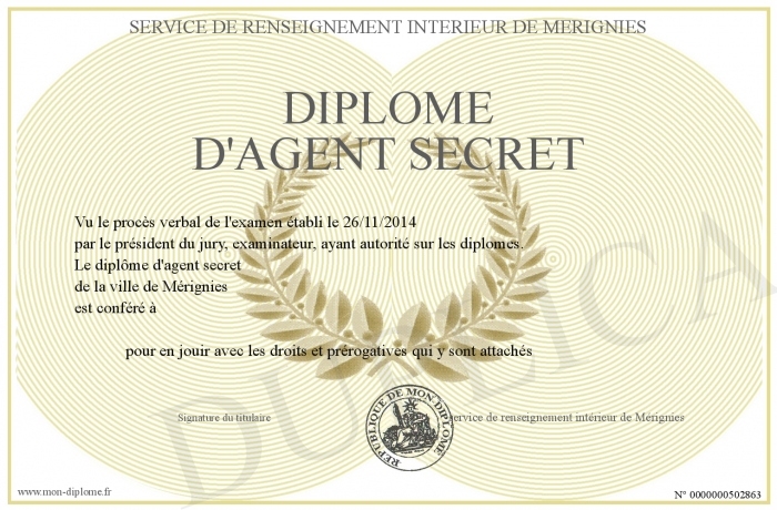 Envoyez par email votre Diplôme d'agent secret personalisé