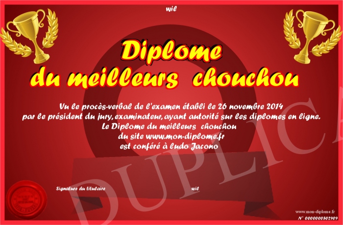 Envoyez par email votre Diplôme du meilleurs chouchou personalisé