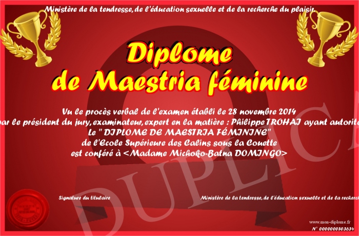 Envoyez par email votre Diplôme de Maestria féminine personalisé