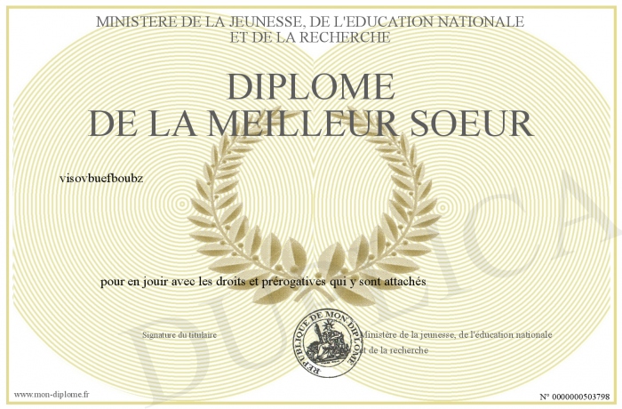 Envoyez par email votre Diplôme de la meilleur soeur personalisé
