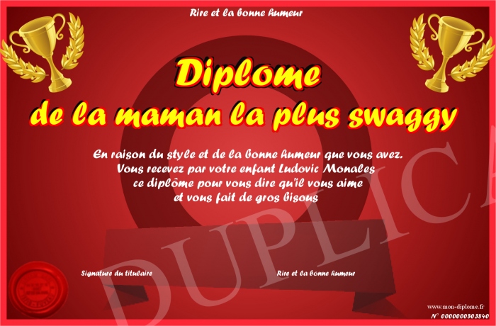 Envoyez par email votre Diplôme de la maman la plus swaggy personalisé