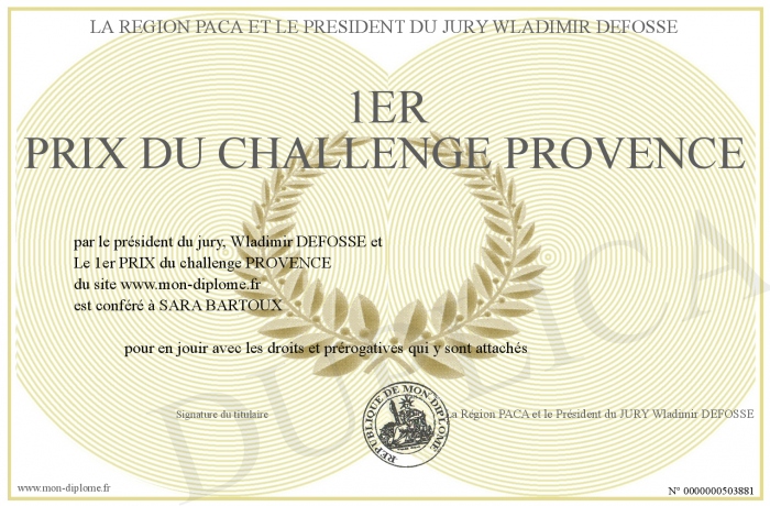 Envoyez par email votre 1er PRIX du challenge PROVENCE personalisé