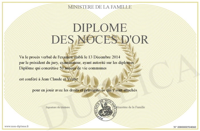 Envoyez par email votre Diplôme Des Noces D'Or personalisé
