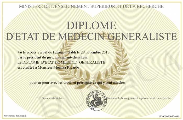Envoyez par email votre DIPLOME D'ETAT DE MEDECIN GENERALISTE personalisé