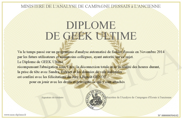 Envoyez par email votre Diplôme de GEEK Ultime personalisé