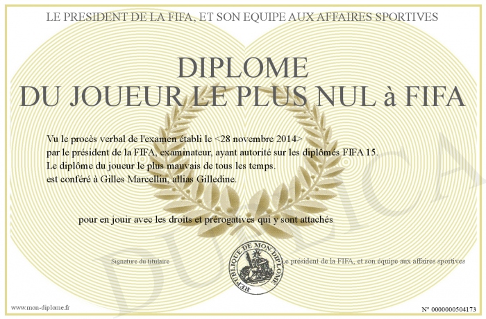 Envoyez par email votre Diplôme du joueur le plus nul à FIFA personalisé