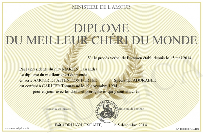 Envoyez par email votre Diplôme du meilleur chÉri du monde personalisé