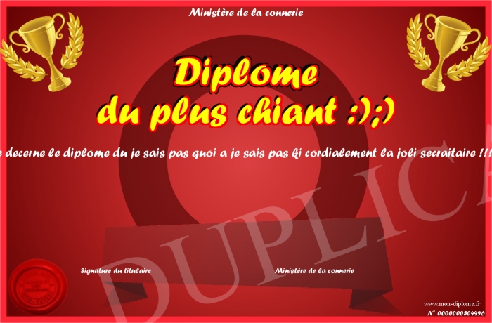Envoyez par email votre Diplôme du plus chiant :);) personalisé