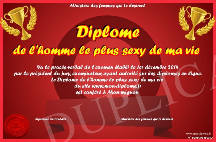 Envoyez par email votre Diplôme de l'homme le plus sexy de ma vie personalisé