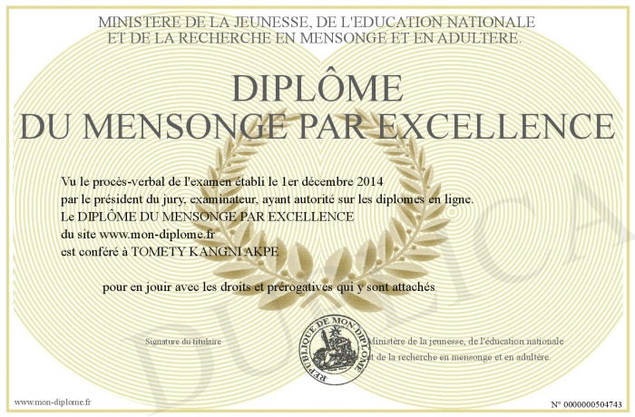Envoyez par email votre DIPLÔME DU MENSONGE PAR EXCELLENCE personalisé