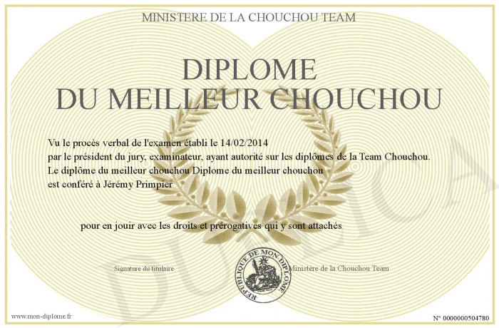 Envoyez par email votre Diplôme du meilleur chouchou personalisé