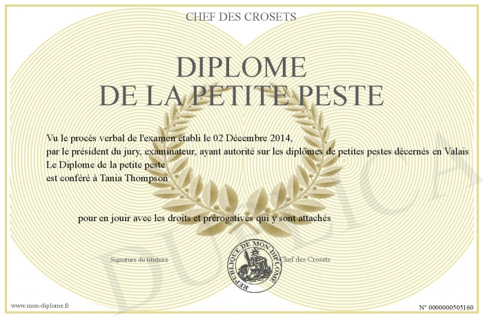 Envoyez par email votre Diplôme de la petite peste personalisé