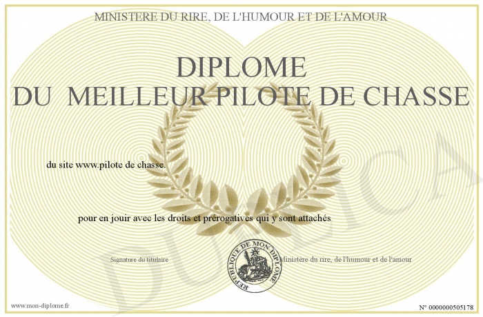 Envoyez par email votre Diplome du meilleur pilote de chasse personalisé