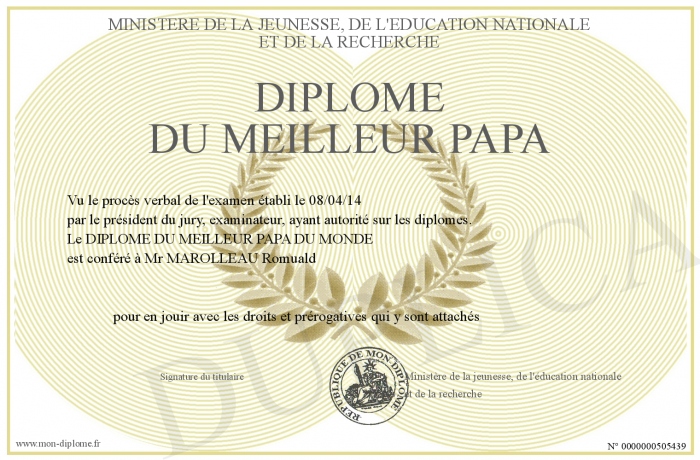 Envoyez par email votre DIPLOME DU MEILLEUR PAPA personalisé