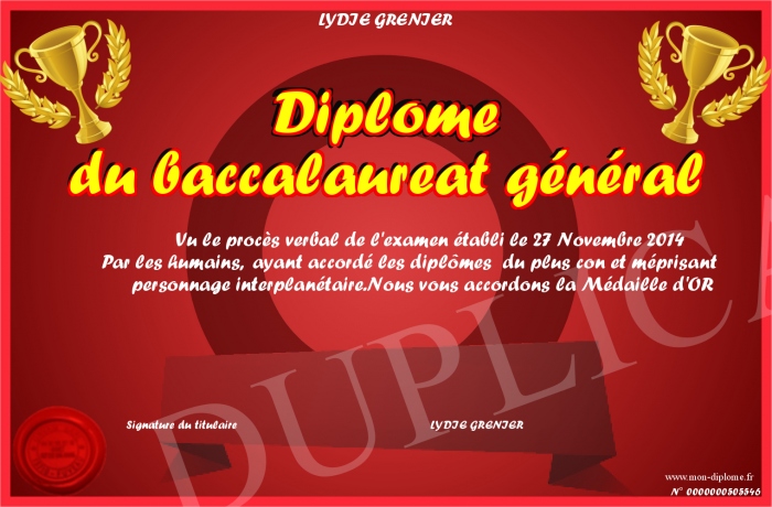 Envoyez par email votre Diplôme du baccalaureat général personalisé