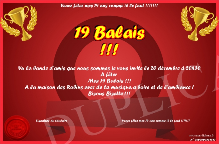 Envoyez par email votre 19 Balais !!! personalisé