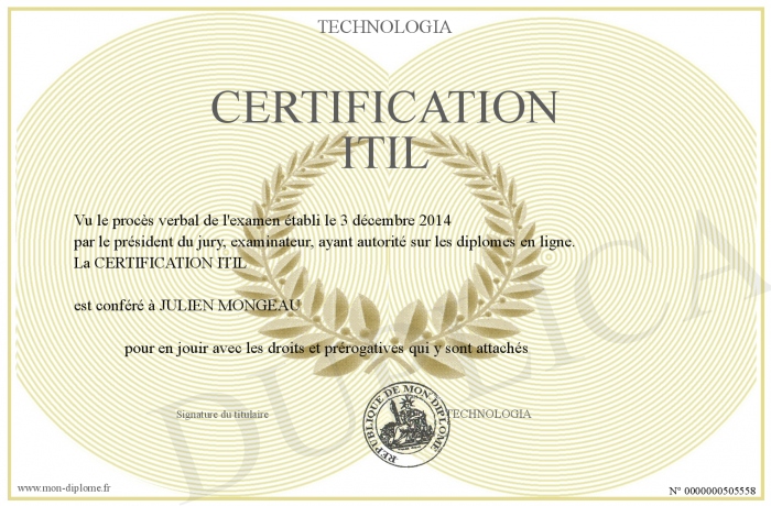 Envoyez par email votre CERTIFICATION ITIL personalisé