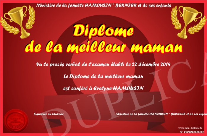 Envoyez par email votre Diplôme de la meilleur maman personalisé