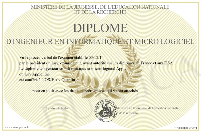 Envoyez par email votre Diplome d'ingenieur en informatique et micro logiciel personalisé