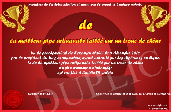 Envoyez par email votre de la meilleur pipe artisanale taillé sur un tronc de chêne personalisé