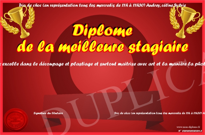 Envoyez par email votre Diplome de la meilleure stagiaire personalisé