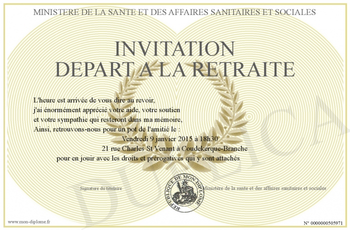Envoyez par email votre INVITATION DEPART A LA RETRAITE personalisé