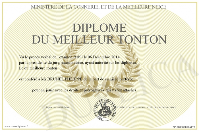 Envoyez par email votre Diplôme du meilleur tonton personalisé