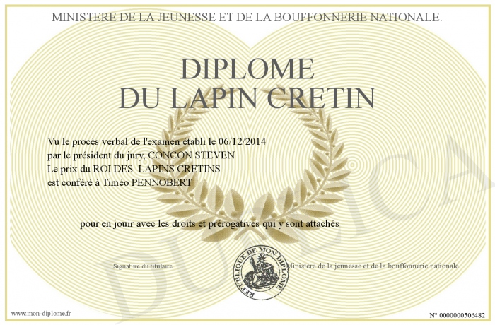 Envoyez par email votre Diplôme du lapin crétin personalisé