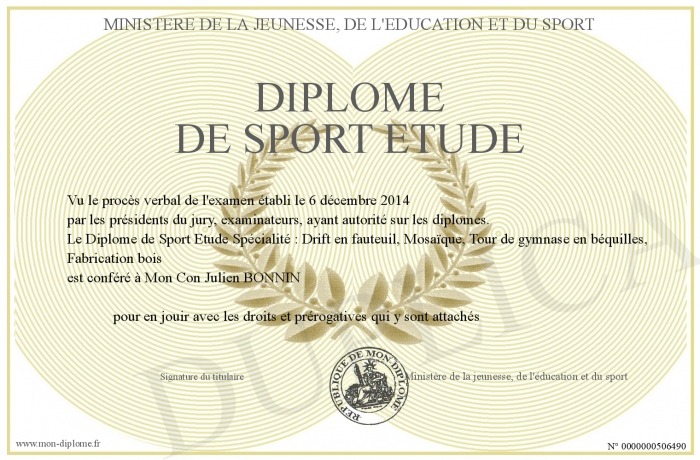 Envoyez par email votre Diplôme de Sport Etude personalisé