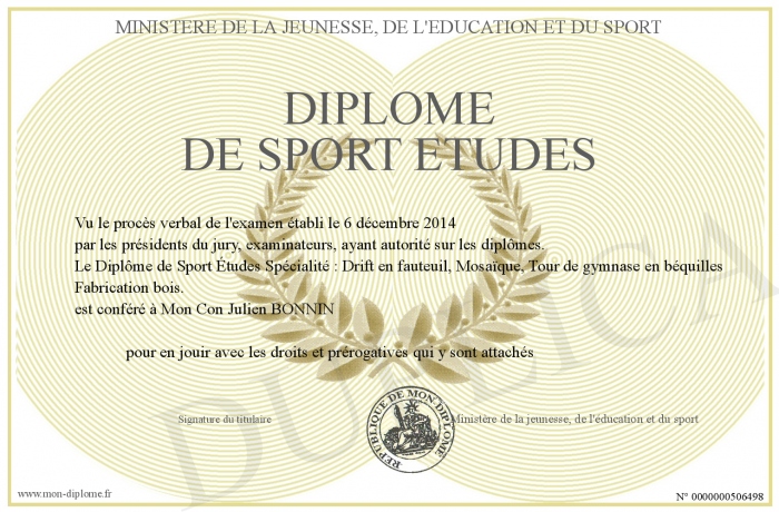 Envoyez par email votre Diplôme de Sport Etudes personalisé