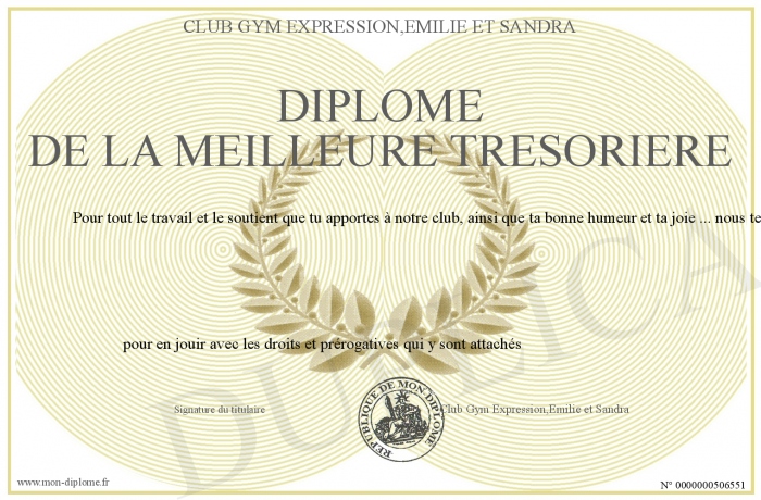 Envoyez par email votre Diplôme de la meilleure Trésorière personalisé