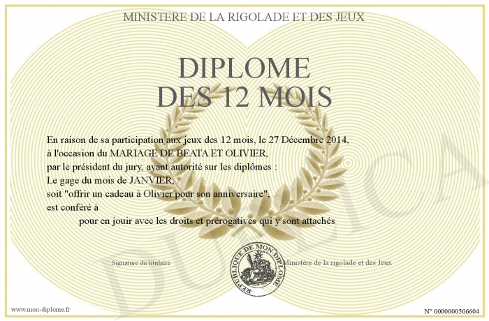 Envoyez par email votre Diplôme des 12 mois personalisé